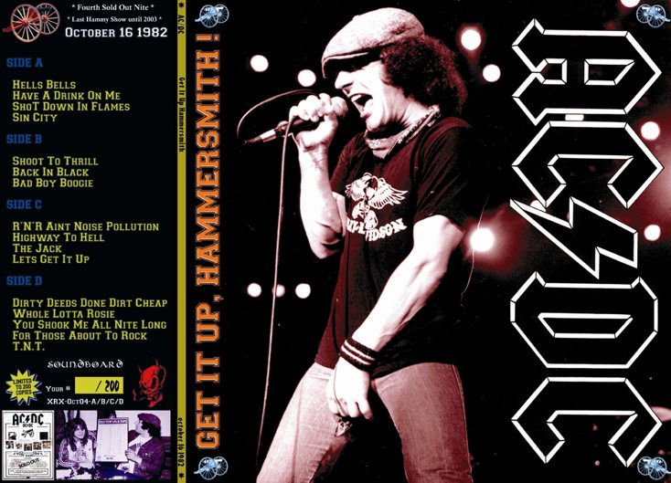 BACK IN MELBOURNE Live Melbourne, Australia on 27th Feb 1981 & Tokyo, Japan 5th Feb 1981 2CD Bondage Music (Japan) BON312/313 GET IT UP, HAMMERSMITH! (grey & purple Vinyl and 2 CD-R) Live in London, at "Hammersmith Apollo" 16th Okt 1982 Limited: 200 copies XRX-OCT04-A/B/C/D |